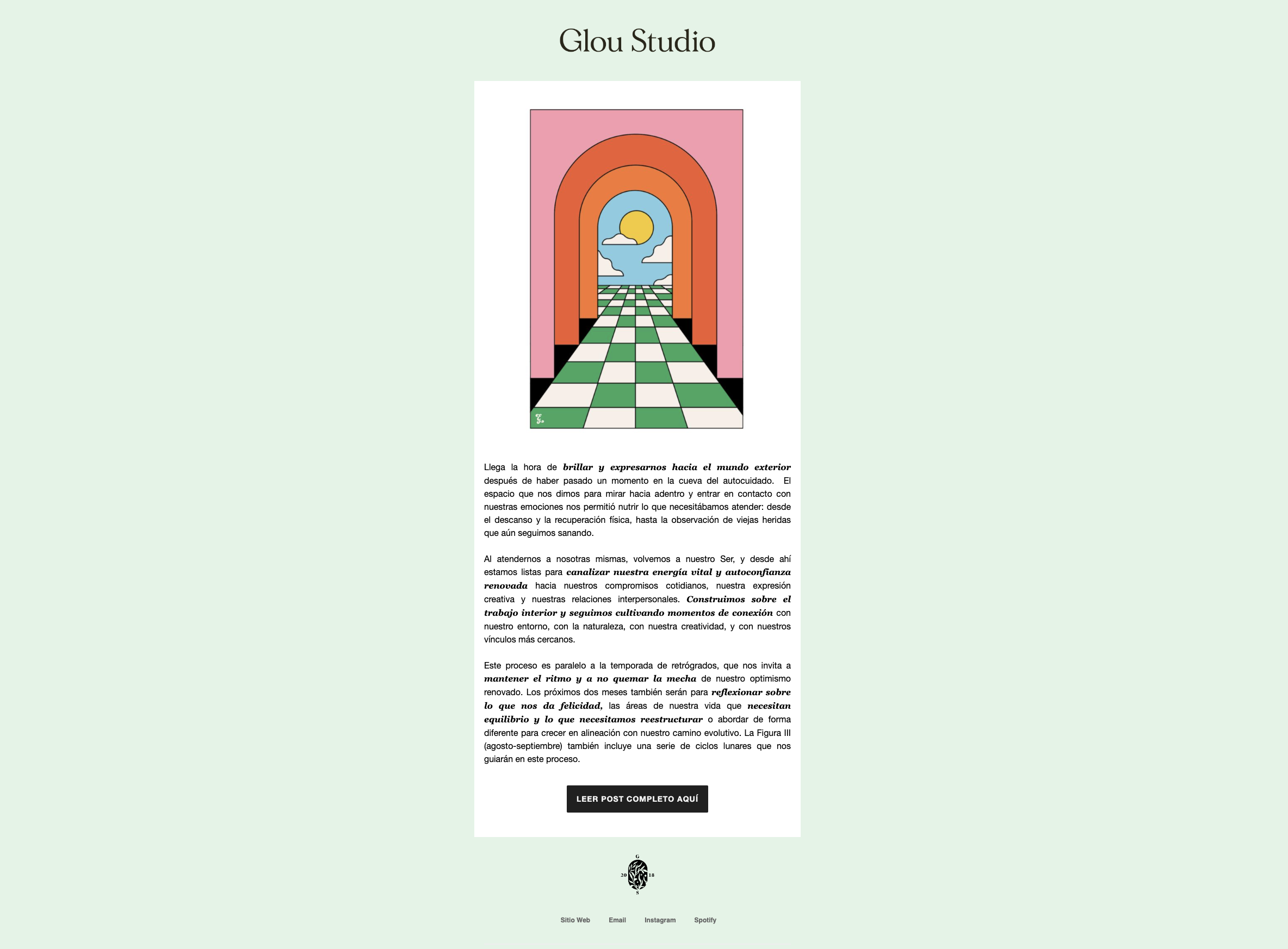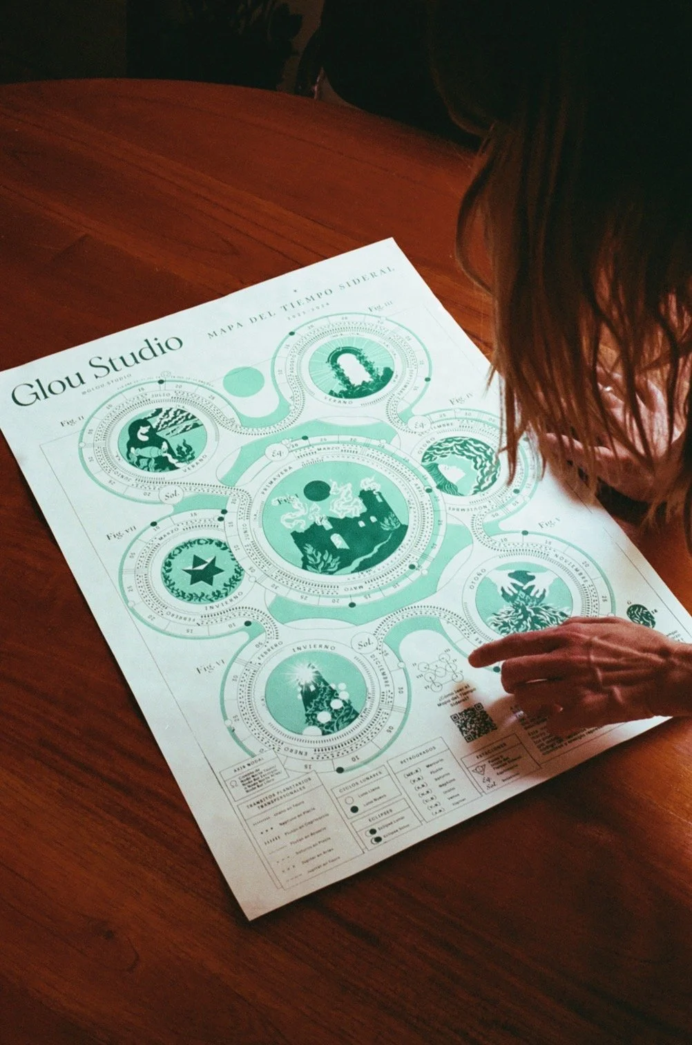 En cada mapa viene un código QR que te lleva a una página de suscripción gratuita donde puedes optar por recibir más información detallada de Glou Studio a lo largo del año que te guiará en reflexión de acuerdo con los aspectos astrológicos y la energía representada en el mapa (también tendrás acceso al repositorio completo del contenido astrológico como referencia).